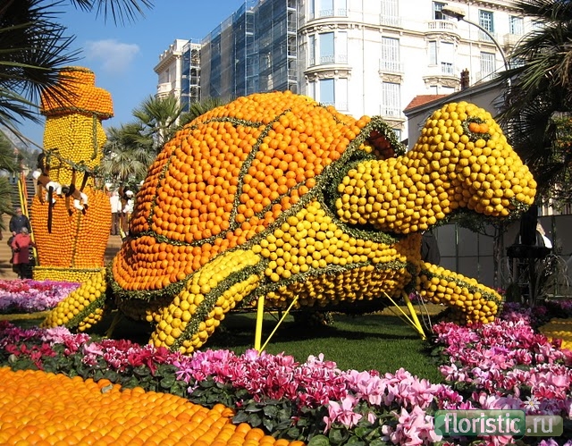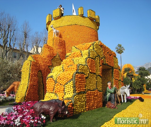 Текст отсюда http://www.calend.ru/holidays/0/0/1315/ Фестиваль лимонов в городе Ментоне (Menton Lemon Festival) на французской Ривьере — праздник, на который собираются сотни тысяч посетителей. В 2011 году он будет проводиться с 18 февраля по 9 марта. Лимоны из Ментона, безусловно, короли среди лимонов: теплый климат французской Ривьеры позволяет выращивать их круглогодично. Снимают три урожая лимонов, самый большой урожай — в марте-апреле. Фестиваль и был задуман как подготовка к самому богатому урожайному сезону в Ментоне. Для подготовки этого праздника используется 130 тонн (!) вкуснейших цитрусовых плодов. Ментон украшается самыми невероятными фигурами из лимонов, апельсинов, грейпфрутов. На несколько дней здесь вырастают апельсиновые замки, сказочные персонажи из лимонов и огромные съедобные деревья! Вдоль побережья проходит парад кортежей золотых фруктов, украшенных цитрусовыми плодами и цветами. Всем желающим предлагается продегустировать новые сорта лимонов, напитки и сладости, приготовленные из «желтого короля праздника». Ежегодно это пятнадцатидневное роскошное шоу посещают от 200 до 230 тысяч туристов. |