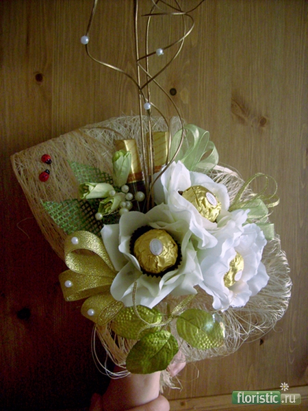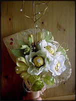 Andrea22, хочу поддержать данную тему. Видимо, таких, как мы "конфетниц" пока мало, но, надеюсь, со временем станет больше. Нас уже двое.Начнём делиться опытом? Вот мой первый "букет" подруге на ДР сделан в мае этого года.