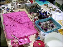 С трудом представляю засушенных насекомых в работах в тех-ке терра. Мне кажется это наивным и не подходящим к стилю коллажа.:p В работах использую шпатлевку фирмы "Макс" с небольшим добавлением клея Пва.Все хорошо держится и не трескается. |