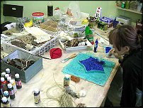 размещаю ![]() Композиции в стиле «терра» выполняются в коллажной технике. Многому, что в обыденной жизни воспринимается как сор, в коллажах находится место. Предметы, казалось бы, неинтересные сами по себе, будучи встроенными в работу, становятся частью своего рода мистерии, игры, спектакля, в котором им отведена значительная роль. Обаяние техники «терра» — в ее многозначности. С ее помощью можно воспроизвести объем, глубину, цвет, игру светотени, разнообразие фактуры. Многое связывает коллаж «терра» с живописью. На высохший раствор накладывается колористический тон. Тон - это основной цвет всей композиции или какой-либо ее части. Большое значение в коллажах "терра" отводится фактуре: характеру поверхности, способу обработки. Для работы потребуется емкость для замеса раствора, пульверизатор для смачивания, шпатель, резиновые перчатки для работы, палитра для разведения красок, кисти для нанесения краски. Малярными кистями с искусственно щетиной размером 20, 20, 58 мм прорисовывают фон, художественными от 2 до 12 размера прописывают детали и небольшие фрагменты композиций. Потребуются также шило, проволока, скрепки, ножницы, плоскогубцы. Разумеется придется использовать различный "мусор", выбор которого будет зависеть от вашего видения картины. Это могут быть и засохшие листочки, обрывки бумаги, кусочек стеклышка, скорлупка, пуговица, тесемка, веревочка. Даже трудно предсказать, что можно использовать в творческом порыве. Коллажи обычно тяжелые, поэтому основу надо выбирать толстую. Из красок наиболее подходит гуашь. В коллаж встраивать можно только сухие растения. Сушить под прессом нельзя, так как растения, листья теряют свою форму, объем. Поэтому растительный материал сушите на воздухе. Причудливые формы вам будут даже на руку. Легкие материалы крепятся с помощью раствора, тяжелые: орехи, шишки, каштаны, желуди - привязываются тонкой проволокой (желательно приобрести флористическую проволоку). При составлении композиций опытные художники используют даже насекомых. Разумеется засушенных. Для этих целей вам потребуются энтомологические булавки. Обычные иголки и булавки не годятся. Проще использовать в работе тряпичных насекомых. Бисер используют в связке, та ккак отдельные горошины "потеряются" в сюжете. Богат на свою выразительность такой материал как ткань. Техника изготовления фона Основные техники - это граттаж, фотттаж и декалькомания. Граттаж — способ «перевести» узор какой-либо поверхности — дерева, металла, фактурного стекла: свернутых произвольно бечевок и т. д.— на холст. Расстелив холст поверх предмета, нужно нанести на него краску — и фактура материала отпечатается на основе. Получившийся абстрактный рисунок подсказы наст сюжет или тему будущей картины. Художник дорисовывает произвольный орнамент в соответствии со своими ассоциациями. Подобным же образом используется прием декалькомании. Краску выливают на лист бумаги, накрывают сверху вторым листом, а затем разъединяют их. Всматриваясь в отпечатавшийся на бумаге абстрактный рнсунок, можно разглядеть фигуры, пейзажи, образы. Фроттаж — еще один способ нанесения отпечатка. На натертую графитом фактурную поверхность накладывают бумагу и получают на ней отпечаток, повторяющий узор фактуры. Описанные техники создания фона используются во многих флористичес