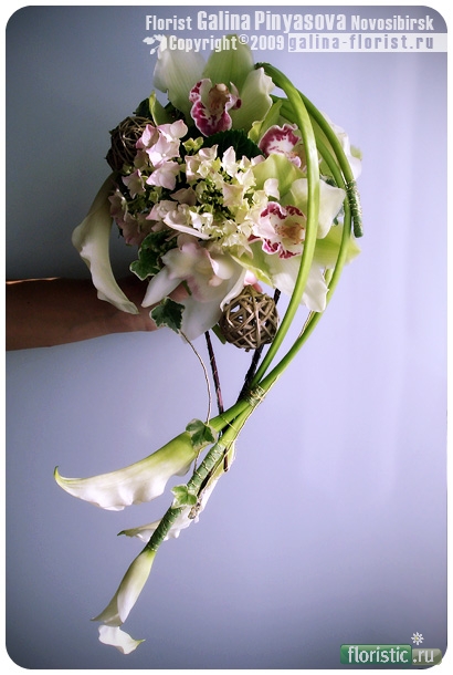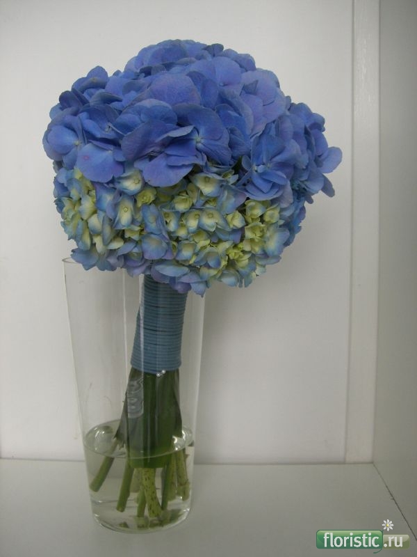 Кстати, нам в Николь рекомендовали надевать на гортензию пробирки, если она участвует в букете на живых стеблях. |