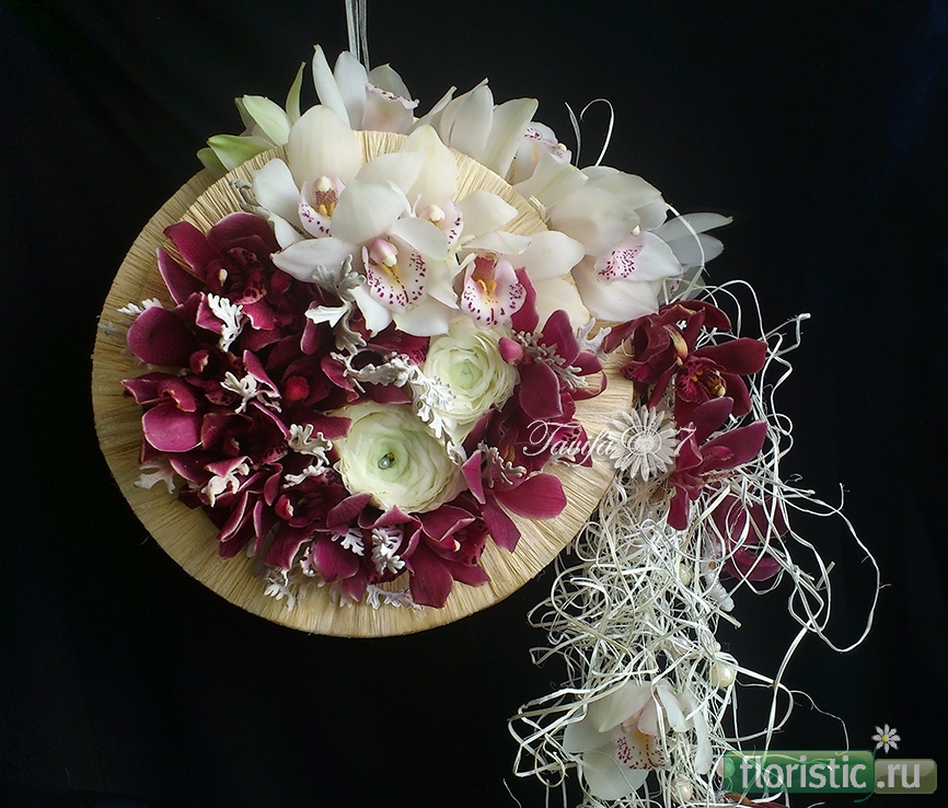 | букет на диске, букет на каркасе, композиция в зонтике, проволочный каркас |