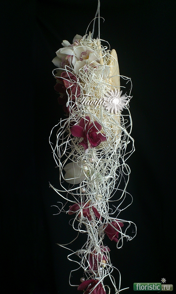Остались цветы, темные орхидеи уже не в лучшей форме,ранункулы вообще без стебелька, отломались, вот потренировалась... Просто было интересно сделать такой каркас, времени занял много, пока придумала, как его собрать, но букет держать удобно, хотя может показаться, что это не так. Основа - коматекс обтянутый натуральной рафией. http://tavifa7.blogspot.com/2013/05/0205.html Я не волшебник, я только учусь! УРРРРААА!!! Нашла где учиться!!!! |