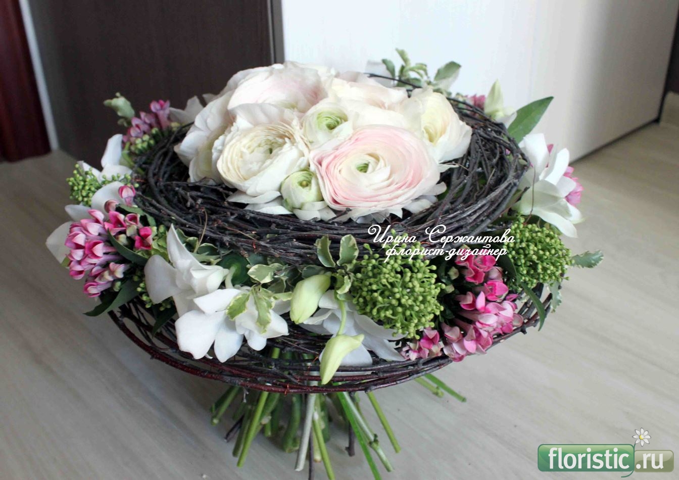 | букет на диске, букет на каркасе, композиция в зонтике, проволочный каркас |