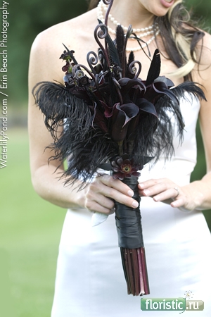 вот Букет невесты Итак, белые цветы – это: белые розы, магнолия, белые лилии, гардения, георгины, камелии, тюльпаны, маргаритки, гиацинты, белые орхидеи, альстромерии, каллы и фрезии. Используйте их в своем букете, тут идеально подошел бы короткий букет, обвитый тугой черной лентой или другим черным декором на ножке для придания дополнительной драматичности композиции. Что касается черных цветов, это, конечно, оригинальнее, но и сложнее, и дороже. Выбор невелик: ‘Королева Ночи’ – черный тюльпан; ‘Черное Баккара’ – роза; ‘Black Tie Affair’ – огромные вычурные черные цветы; самые темные фиалки; или фиолетовые варианты, такие как ‘Пиратский флаг’ или ‘Боульз Джек’. Все это редкие и дорогие цветы. Помните, что именно цветы в данном случае играют роль очаровательного акцента, отнеситесь к этому вопросу со всей серьезностью. Добавлено через 1 час 23 минуты Подскажите пожалуйста,как крепится орхидея на ротанге!в таком букете (взяла как пример букетик пользователя Аленький) рs.мне тут безумно нравится,второй день не вылазию..точнее ночь.все так четко и по делу,солько информации полезной.спасибо,очень рада.что к вам попала.для меня сейчас это очень важно,т.к. флорист я еще начинающий и теперь понимаю ,что сильно начинающий Добавлено через 2 минуты и еще- как изгибать ротанг(или он в таких завитушках и продается?)я сним пока не работала,к сожалению. |