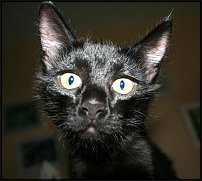 цветочница Анюта, черный-просто красавец! Обожаю черных котов. У меня тоже живет вот такой франт, зовут БусинкИ (взяли котенком с улицы: лапы длинные, крупные,сам костлявый, а глаза как маленькие желтые бусинки), или Буся.Он от одного соседа сбежал, сидел на приступочке на улице , ждал хозяев. От этих соседей животные постоянно уходят к магазинчику искать лучшей доли.Находят