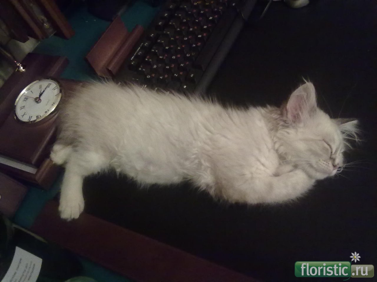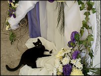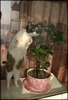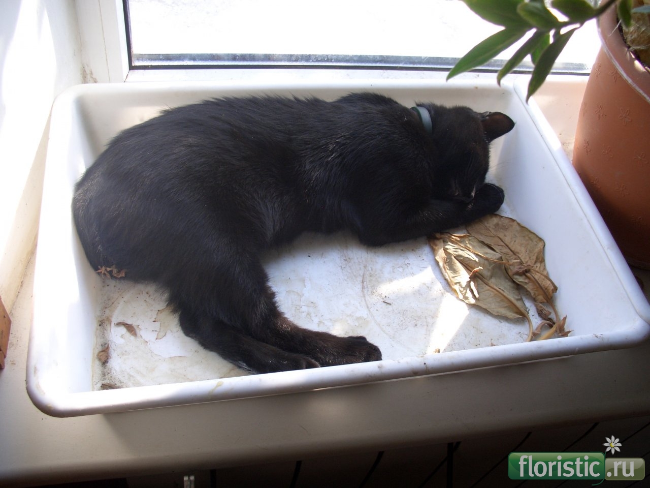 ![]() Как все черные коты любит белое, себя на белом.Спит на чехлах, скатертях, белых подоконниках, в белых поддонах цветочных. |