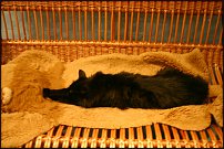 ![]() Лина черный - это кошка, Муся . Все принимают ее за кота. Всего у меня три кошки - Дуся, Муся и Моня. Поскольку белого у меня ничего нет, приходиться черной кошке спать на "тирговой шкуре" ![]() |