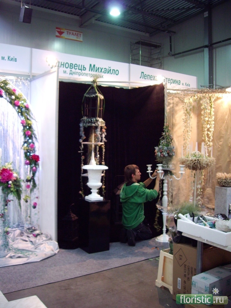 1- место - Тишура Наталия, студентка Академии флористики. Награда: поездка на флористическую виставку ІРМ, г.Эссен (Германия). 2-е место - Дорошенко Катерина (приз - 5000грн.). 3-е місто - Татаріна Ірина (приз - 4000грн.), студентка Академии флористики. Несколько фото с выставки: |