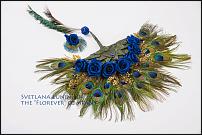 Одно из моих любимых сочетаний - синие розы и павлиньи перья. На этот раз в веере и бутоньерке.