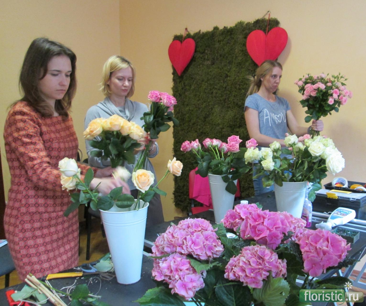 с Перес Дианой, Джораевой Говхер и Дариной Сижук Курс "Мастерская Свадебного декоратора" Школа профессионально-практической флористики "Мажорель-Класс" в Киеве. |