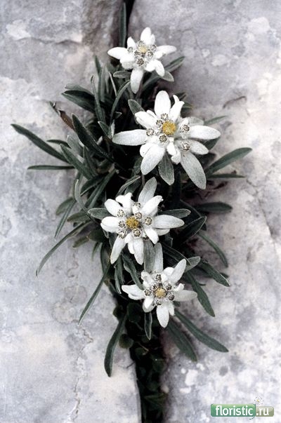 Альпийский эдельвейс – красивый и благородный цветок, который очень гармонично смотрится в зимних букетах. Об этом горном красавце сложено немало легенд и, конечно же, все они о любви. В одной легенде двое влюбленных не могли жить друг без друга, но Судьба сулила им разлуку. Молодые люди не хотели расставаться и решили вместе умереть, сбросившись со скалы. После их гибели скалы покрылись в знак победы Любви над Судьбой изумительной красоты цветами. У народов гор цветы эдельвейса считаются символом мужества и стойкости. Любите и дарите белоснежные эдельвейсы своим половинкам!