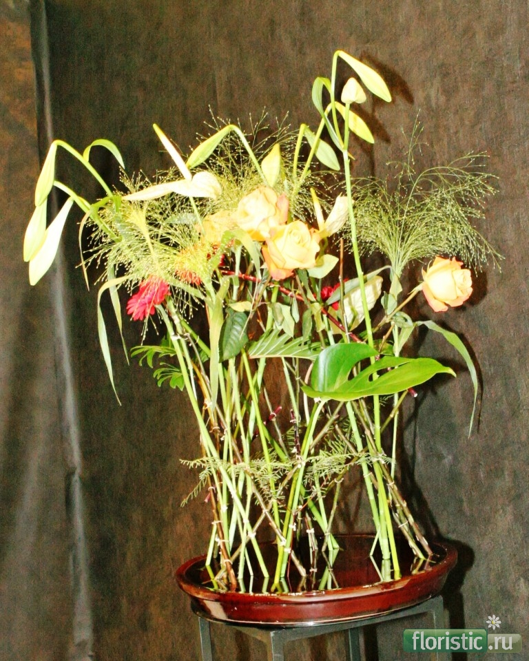 )))А вот сюрпризный букет у него строго говоря не букет, а "работа со связками" - симбиоз между букетом и композицией, у нас недавно в "Николь" было такое занятие. ![]() Цитата: