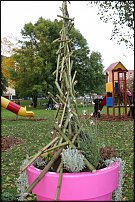 Первая работа Роберта Милковского (ктати,я подозреваю,что вставка Рафак ,необычная для поляков понадоблась из-за крайней известности компьютерного специалиста из США с тем же именем,но может быть.я и ошибаюсь) - праздник,вечеринка,ярмарка Пеппи,короче - project pipi's feast. Работа получила 5 место. Работа очень красивая и эффектная,ее много фотографировали, рядом с веселыми работами остальных участников она производила очень необычное впечатление... но - убейте меня,при взгляде на нее у меня возникает ощущение,что это скорее арка для свадьбы в тропическом стиле,или - со всеми скидками,что Пеппи жила в Тайланде. Единственное,что напоминает о теме задания,это длинные косы из пакли(?),которыми была дополнена работа. Ну и дерево. Было там дерево... Еще раз говорю - работа мне понравилась. Но соответствие теме, на мой взгляд, очень условное.