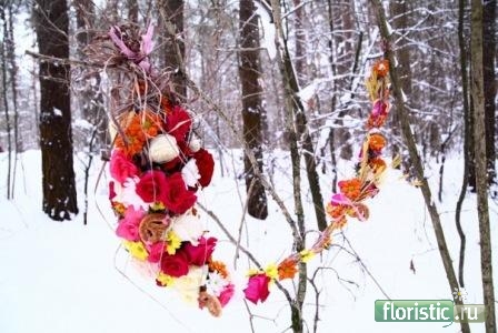 рождество уже за горами, но вот мое белое оформление магазина одежды. ветки - из соседнего парка, лоза в венке - из нашего сада. на полках по магазину расставлены еще около 5-6 композиций в таком же стиле. на днях сфотографирую.