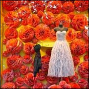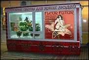А это витрины соответственно , мне нравится витрина с розами, она означала великую борьбу за свадебные заказы.Оформление рабочих столов флориста тоже достойно внимания, в первом случае за стеклом картина 15 см глубиной и в ней- искусственные цветы, во втором случае- на чем-то типа вешалки подвешиваются в бутылочках, в пластмассовых капсулах лом цветов.