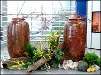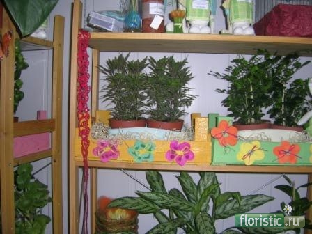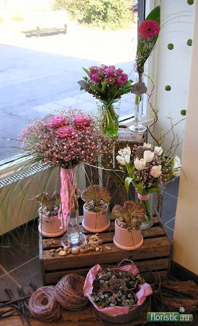Ну что , друзья флористы...все!? витрины не оформляем!? А я вот к примеру только и занимаюсь, что переоформлением...магазин маленький...окна огромные...горшечных много, кашпо...валом...только успеваю...торговля шуршит...ВЕСНАААА! Идеи ....идеи....тут на работу фонтанчик свой старый притащила...водичка льёться...красота...народ вопросами достал...что и как модно нынче...и как чего пересаживать надо...ну и прицепом , то одно предложишь...продалось.., то другое...опять продалость...Вот подастовала старые , точно лет 15 пролежали...кашпо...сделала 4 минисада...в один день все продались...у хозяйки магазина прямо глаза округлились, от такой неожиданности...! Скоро на улице лоточки с цветочками поставим, народ высадкой цветов займеться...балконы там всякие...террассы...прямо жду не дождусь! :D |