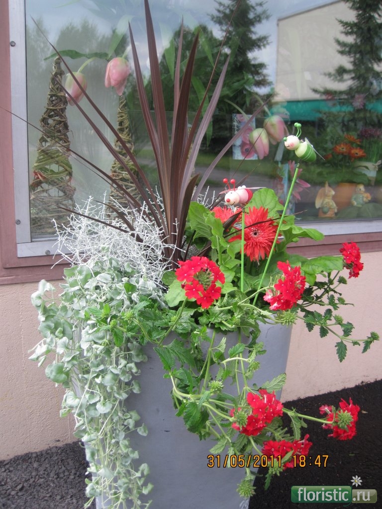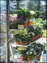Alexis, onega, спасибо! Мы меняем 1-2 раза в неделю витрину. 1 раз кардинально, 2й по мере почи материала на ней. У нас очень активное вечернее солнце, что ограничивает выбор материала для оформления. Сейчас начали фотографировать, планируем послать на конкурс витрин по финляндии. Все-таки реклама. Народ реагирует вяло. Это фотки сделаны в 10 вечера, а днем висят ампельные, стоят корзины на улице с летниками и прочим, что отвлекает внимание прохожих от непосрердственно флористических изысков за стеклом :-). Но благодаря витринному тортику цветочному, получили заказы на подобные же. Магазин открыт только полгода, до этого только похоронное работало (оно на фотке слева, черное) Клиентуры мало, отходов полно :-(Вот и придумываем как обратить внимание.