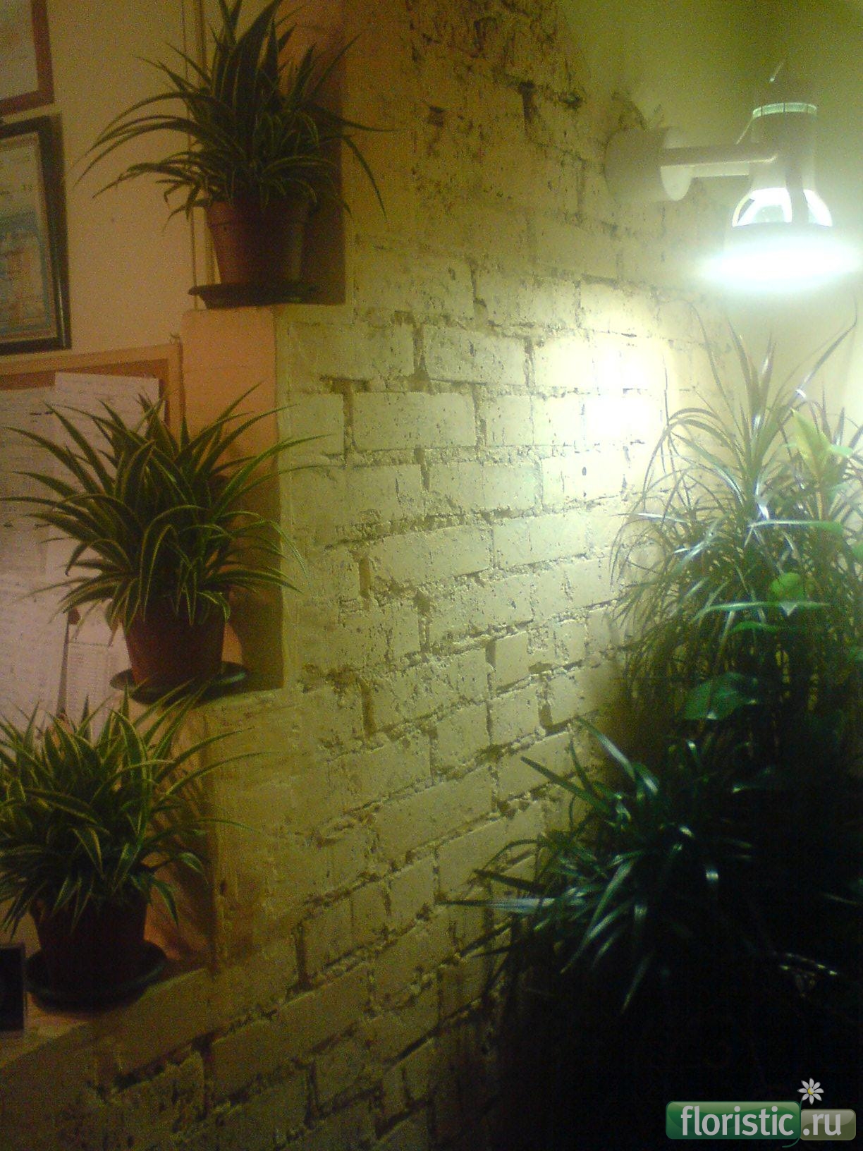 От горшечки не отказывайтесь. Преобретите комод с большими ящиками (есть в Икеа). Выдвигаете ящики и ставите туда горшечку,смотрится интересно и очень удобно. Свет,лучше яркий выбирайте. От теплого (желтого) глаза утомляются , а цветы лососевого и бледно-розового цвета ,сильно теряются в цвете. Если растения будут стоять в темном углу , то можете ,как на фото повестить специальную лампу для растений, она дает дневной свет + тепло. |