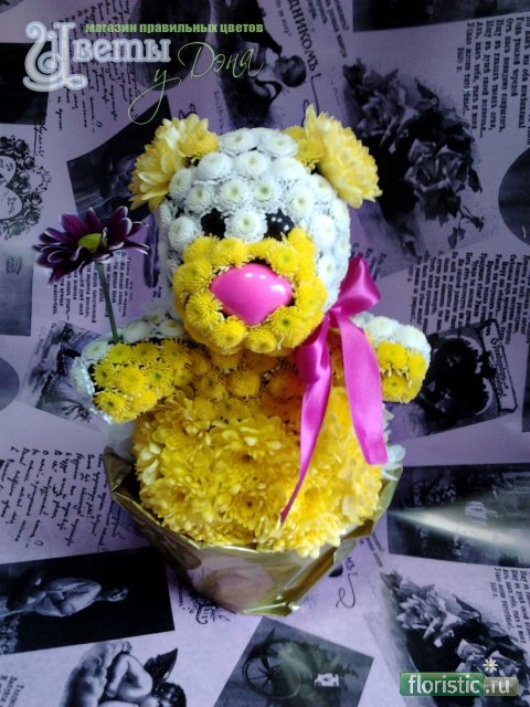 Если делается игрушка из живых цветов на заказ, то можно дать клиенту несколько советов по продлению жизни таким зверятам.