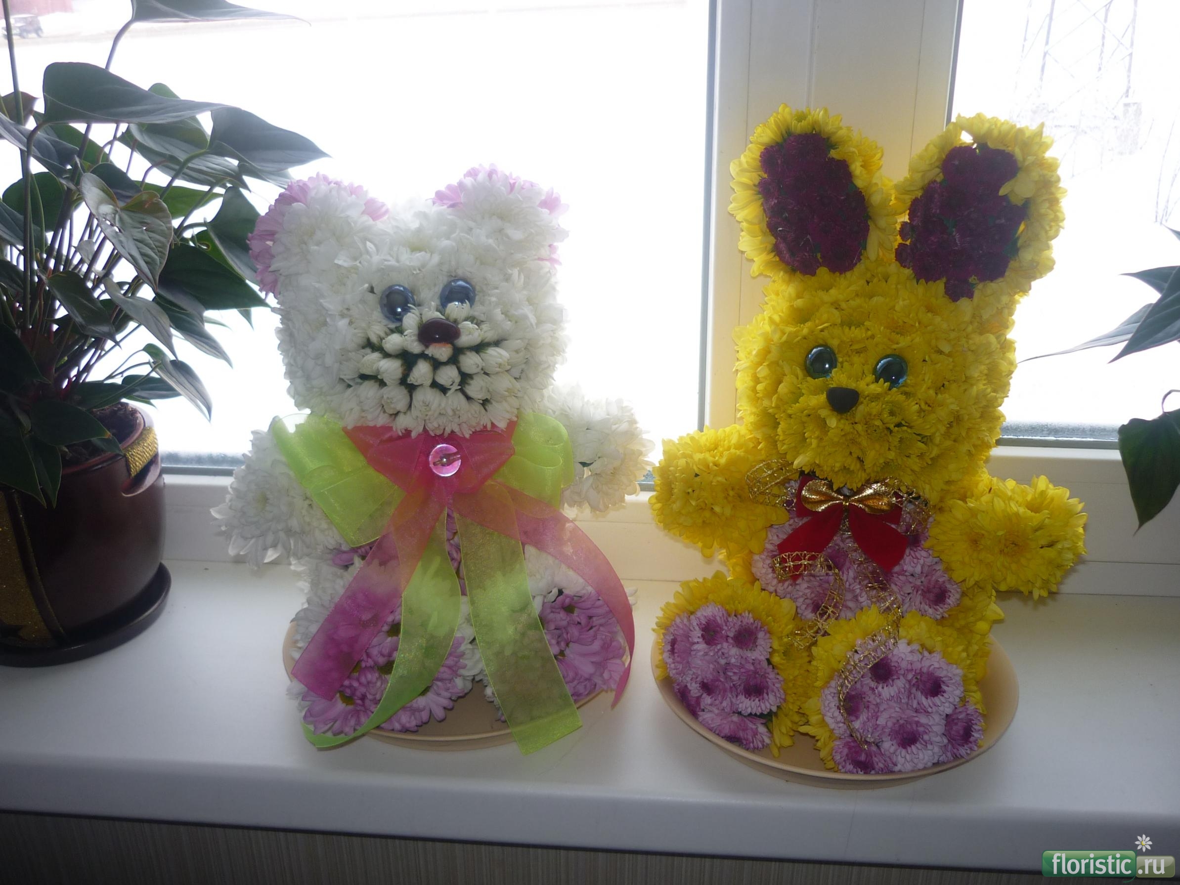 | зверюшки из цветов, фигурки из цветов |