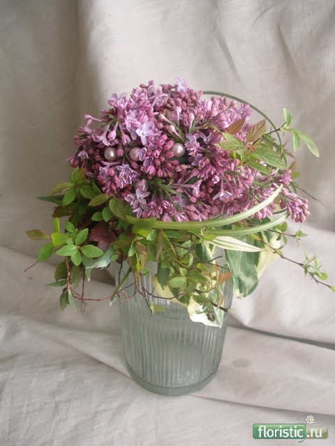 Каллы, конечно, не с грядки, а с Рижки, которая буквально через дорогу. Но работая только с травой, работать с каллами не научишься. Поэтому потихоньку подкупаю всяких цветочков благородных сортов со своих декретных, да и учусь работать с ними. При этом не забывая "подбривать" всё что хорошо растёт да плохо лежит на местных клумбах в свои "учебки" )))))Вот ещё одна работа на суд. Говорите, судите, режьте - ЭТО ВАЖНО! О композиции. Тема - "Первое свидание". Подумала, что выбор сирени как доминанты актуален для этой темы. К тому же хотела понять , как работать с портбукетницами. |