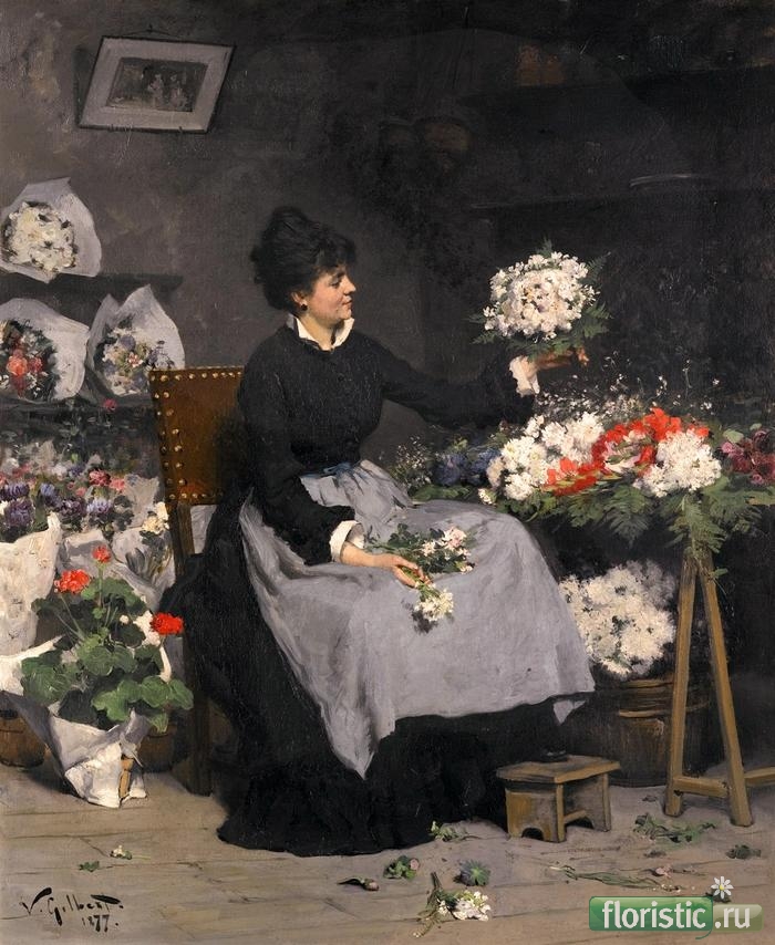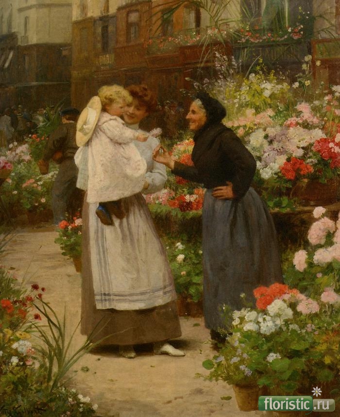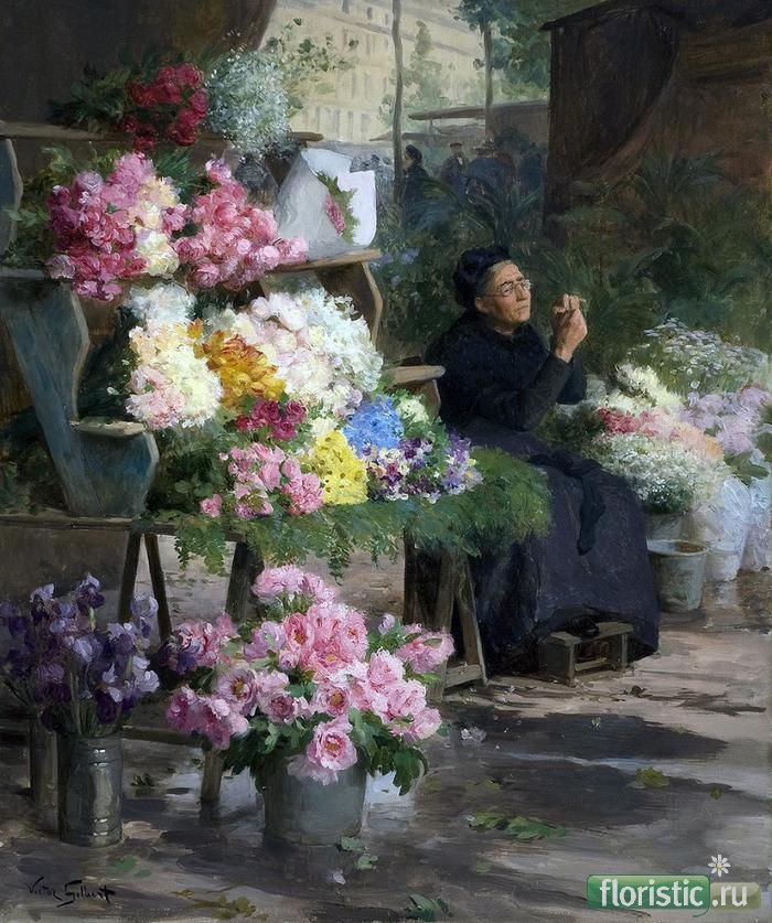 Гилберт Виктор Габриель родился в Париже в 1847 году. Его родители были бедными, и поэтому талантливый Виктор не смог получить должное художественное образование. Своей профессии он обучался, работая учеником художника декоратора. Безграничным источником вдохновения для юного художника был Париж. В частности, район Парижа, в котором велась уличная торговля. Здесь бурлила шумная и занятная жизнь. Многие картины Виктора Габриеля навеяны сценками, увиденными им на этом рынке. Часть картин выставлялась в 1880 году в Салоне. Эта выставка принесла ему первую золотую медаль и первую славу. Несмотря на полное отсутствие подготовки, и опыта, Габриель очень быстро стал известным в парижском обществе. В 1873- 1874 годах, состоялась выставка его работ. В 1870 году он познакомился с Пьером Мартином, главным сторонником движения импрессионистов, они становятся близкими друзьями. Благодаря поддержке Мартина, Габриель смог оставить работу декоратора и заниматься любимым делом – живописью. В основном Виктор Габриель Гилберт писал жанровые сценки из жизни горожан Парижа. Многие картины Виктора Габриеля посвящены цветочницам и цветочным рынкам. « Цветочница Парижа», « Цветочница», « Цветочный базар в Париже» и многое другое. Но, особое место в его творчестве занимали полотна, на которых он писал детей. Изначально в картины Габриеля выполнены в стиле реализм, но постепенно можно увидеть переход от реализма к импрессионизму. Этот переход объясняется влиянием времени. Умер Габриель в 1935 году. Похоронен на кладбище Монмартра в Париже. взято тут: Гилберт Виктор Габриель (Victor Gabriel Gilbert) - французкий художник. и тут: Жанровая живопись художника Victor-Gabriel Gilbert (French, 1847-1933). | Клуб интеллектуалов |