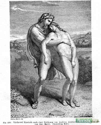 О Гиацинте с древних времен привлекает внимание художников. Но, если на краснофигурных вазах все с Гиацинтом просто и понятно, (рисунок называется Зефир и Гиацинт, Зефир - с крыльями) ![]() то в более позднее время, художники начинают трактовать историю Гиацинта, как историю внезапной смерти, ухода друга и неизбежности расставания. |