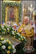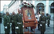 хоста -удивительно стойкое растение! В конце апреля ставили в венок совсем молодые листья, срезали с кустов прямо в монастырском дворе, еще неокрепшие, в руках они обвисали и не внушали особых надежд, но потом в в оазисе все пришли в себя и продержались просто молодцом. А на Успение венок на большую икону в киоте - нельзя было дотянуться доверху со стула и стремянку не приставишь, так что никак не удавалось установить листья хосты в оазис, поэтому их просто положили сверху, между цветами, и листья без всякой подпитки продержались 3 дня, а весь венок - до Отдания праздника. Правда, листья мы протирали детским кремом для удаления загрязнений и придания блеска.