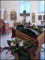 Дорогие участники, взгляните и на наши труды цветочного убранства к празднику в Троицком храме, в Перловке. М.О. Сразу же после выноса Плащаницы из алтаря, батюшки накладывали на Плащаницу веночек, составленный из белых розочек и гипсофилы. К Пасхальной службе общая цветочная композиция в храме изменилась, а венок над цветочным убранством иконы Воскресение Христово, лишь дополнил его. Более подробно: Фотогалерея "Цветочные убранства в православных храмах и монастырях, созданные участниками форума" и в других темах. |