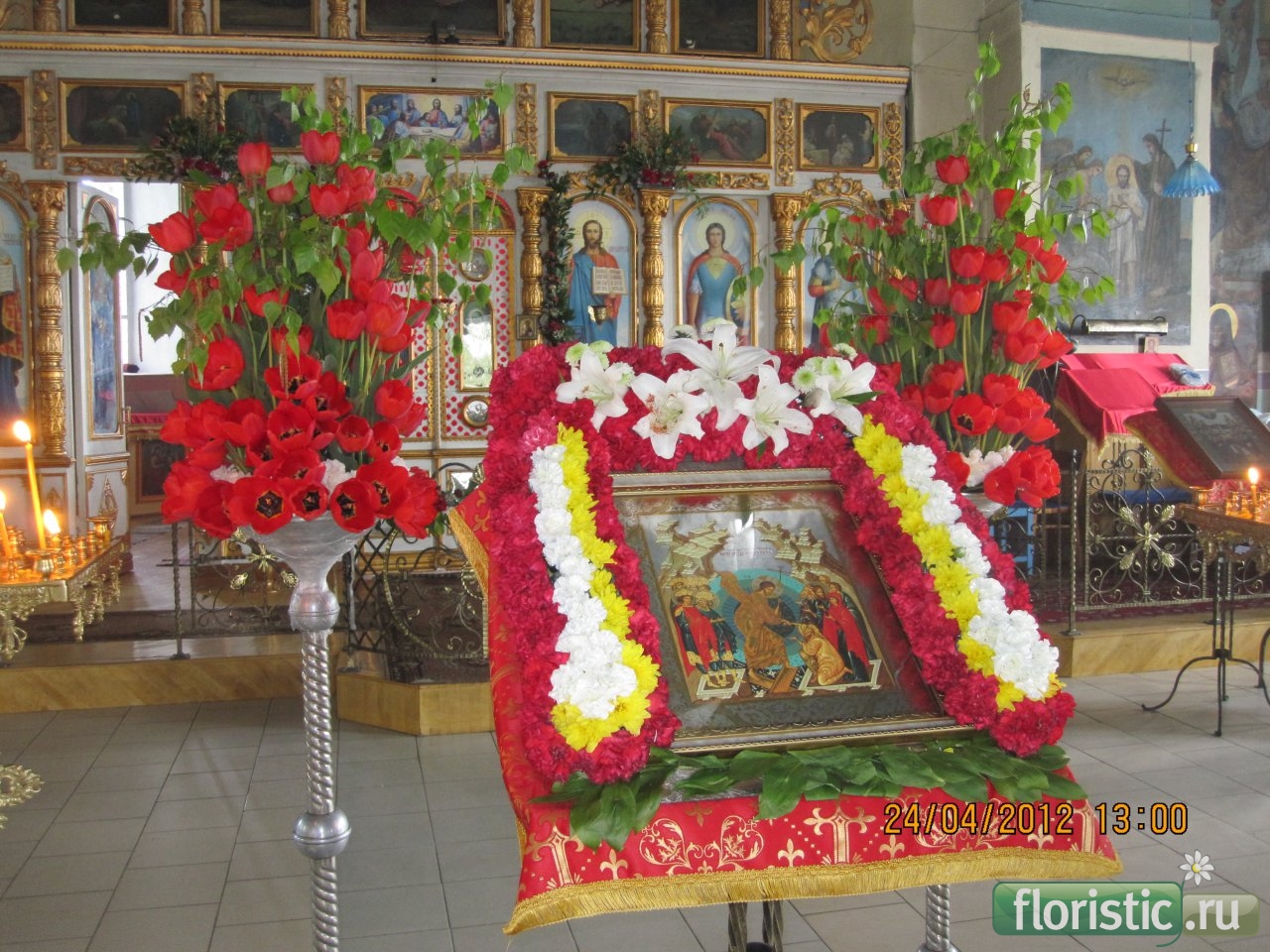 Воскреска я хочу украсить икону в бело-красно-желтом цвете.Белые и красные розы,желтые хризантемки,зелень и гипсофила.У нас много роз растет,петунья,ромашки,ирисы,пионы и хвойники разные,в этом году только посадили.Но у нас цветами занимается прихожанка наша,а она неразрешает резать цветы,так что мы рано утром когда она не видит режем что нам надо.Хочу спросить,местные розы хорошо стоят в оазисе,а то в магазине сказали что плохо.Девочки помоги вам всем Господь!