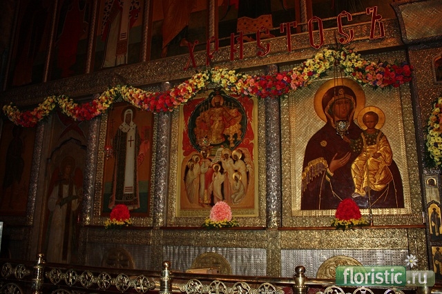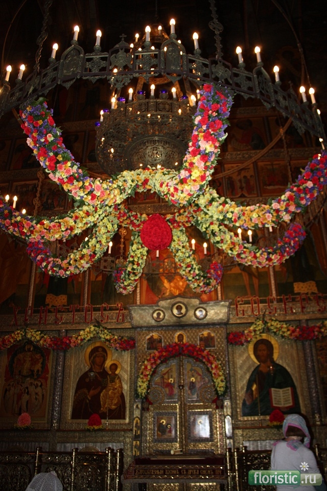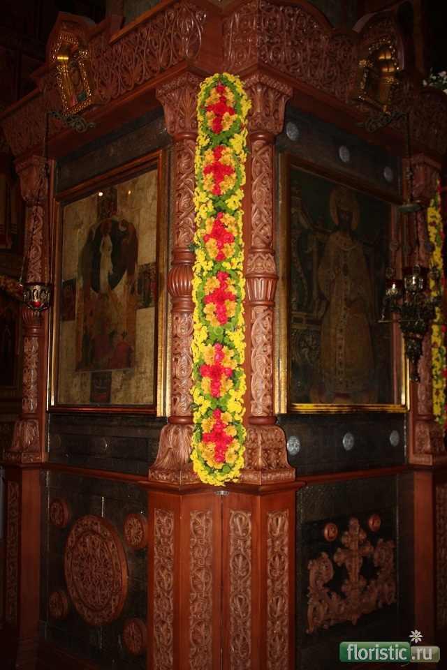 нет, не все... гирлянда на иконостас занимался другой флорист, над Тайной Вечерей гирлянда просто сплетена, а на иконах да, на оазисе а для плащеницы тоже просто сплетена |