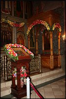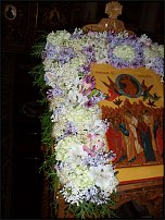 И когда готовые цветочные композиции украсили иконостоас , а в нем иконами был заполнен был только первый нижний ряд , 2 других были пусты ( церковь очень скромная, мало икон , не расписанные, а только беленые стены , хотя довоьно старая , год закладки 1701г Но люди , несушие службу в ней очень душевные и какие то свои .,домашние .), я поняла .что не зря трудилась. Цветы просто святились рядом с иконами. И пропало ощущение не заполнености иконостаса , пустых стен ... Ощущение праздника и душевного подьема ячувчсвую уже несколько дней. Это была как подпитка , энергии , сил , творчества. После этой работы в церкви , мне неожиданно пришли решения творческого характера . как создать работу для участия в выставке . Я очень долго не могла найти нужного решения , все отдельные детали не могли сложиться в единое целое , а тут все получилось, и решение было совсем другим и неожиданным. И все же передать словами все чувствовала в эти часы работы . просто не возможно . Это надо просто испытать. |