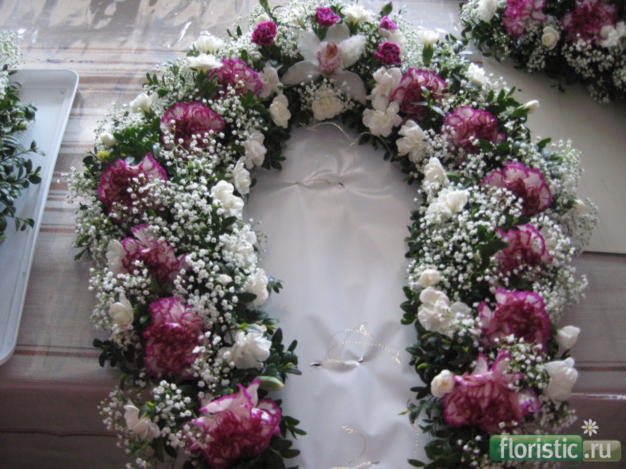 Сразу хочу указать на два существенных, на мой взгляд, недочета. Как всегда, замечаешь такие огрехи, рассматривая фотографии... Первый - это постановка роз в верхней части работы - почти в ряд. Было бы лучше, если бы средняя роза стояла несколько выше, а правая, наоборот, чуть-чуть ниже. И второй - в левой части венка роза и гвоздика очень схожие по тону стоят вплотную друг к другу, практически сливаясь и образуя крупное цветовое пятно, что, как мне кажется, несколько нарушает ритм работы.http://orthodoxflorist.biggo.ru/ https://www.facebook.com/pages/%D0%9...3841332?ref=hl http://vk.com/club54961187 |