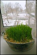Покупаю овес на рынке или в виде кормовой смеси для животных (попугайчики, хомячки) в зоомагазинах. Если возьмете кормовую смесь, то там увидите помимо овса зерна подсолнечника, гороха и других зерновых. Поэтому выросшая травка имеет более разнообразный вид и это тоже хорошо .Лучше замочить зерна на сутки в теплой воде для лучшей всхожести. Потом высеваю в различные емкости в зависимости от того, что планирую украшать. Вместо земли для посадки я использую обычные опилки, купленные в зоомагазине, немного добавляю земли, но можно и не добавлять и так все всходит замечательно. Для того, чтобы получить урожай травы вовремя, надо помнить, что первые всходы появятся только на 5-6 или даже 7 день после высевания в грунт. Высота 7-8 см у травы наблюдается на 7-8 -9 день от появления всходов. То есть посеять траву непосредственно в емкости с грунтом надо минимум недели за две, оптимально - дней за 15 до нужного вам дня. |