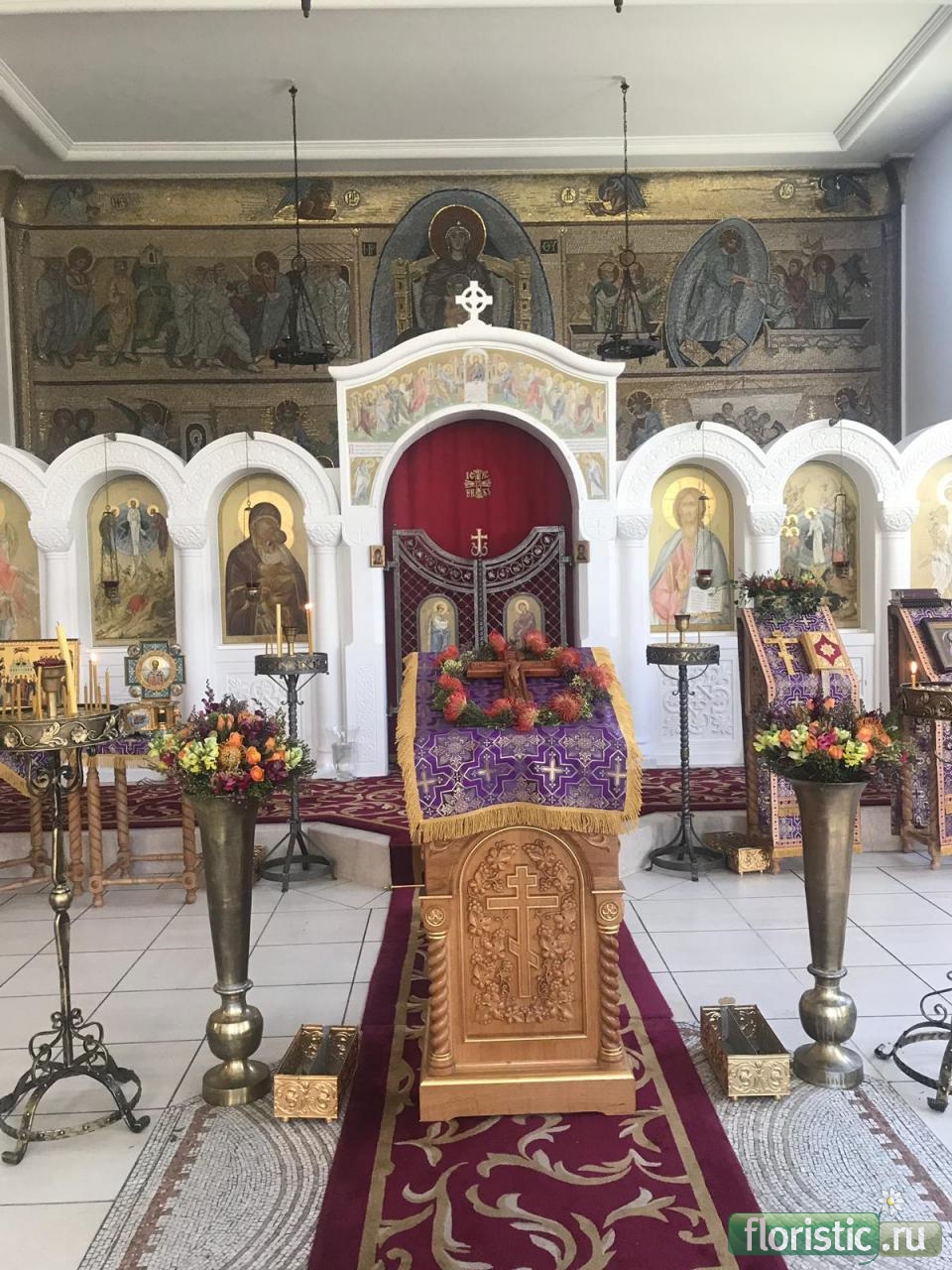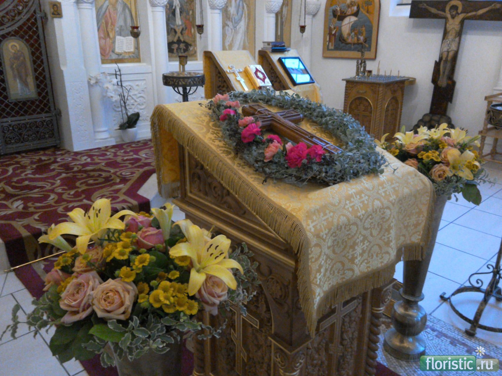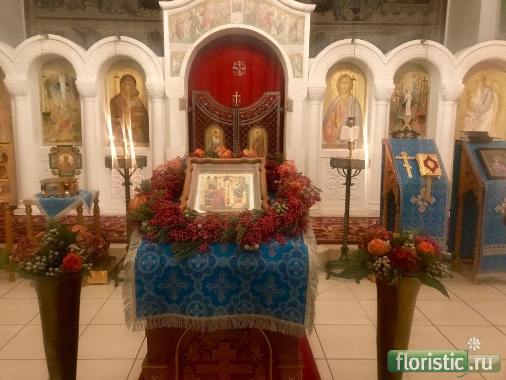 На Крестовоздвиженье в боковых букетах поменяли только гартензии, добавили калл и гиперикума. Все остальное прекрасно сохранилось.