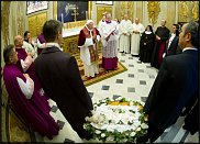 Глядя на работы Анастасии (из Днепропетровска), ассоциативно вспомнился католический обряд благословения ягнят (не намекаю, что в Настиных работах что-то от него есть - просто там тоже ягнята, подумала, что интересно), о котором случайно узнала недавно - двух белых ягнят в цветочных венках, покрывальцах, корзинах и прочих знаках отличия презентуют понтифику. Ежегодно 21 января на праздник Св. Агнессы проводится папская месса, в ходе которой папа благословляет этих ягнят. Позже их остригают и изготовляют новый паллий(элемент литургического облачения папы римского). Не мое, конечно, дело, но ягнят после стрижки съедают в благотворительных целях, так что заранее их жаль, хотя вертепных сдобных ягнят тоже съедают и их жаль тоже чуть-чуть, так ведь то сдоба!А барашки Анастасии мне очень понравились, так трогательно передана мелкими цветочками их пушистая мягкая шерстка. Так поняла, что все фотографии из одного храма, не смогла представить, как все выглядело вместе, но еще понравились на иконостасе буквы (не знаю, уместно ли назвать монограммой). Очень большая работа проделана.