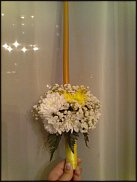На этом форуме увидела украшенную свечу для священника, вставленную в портбукетницу.