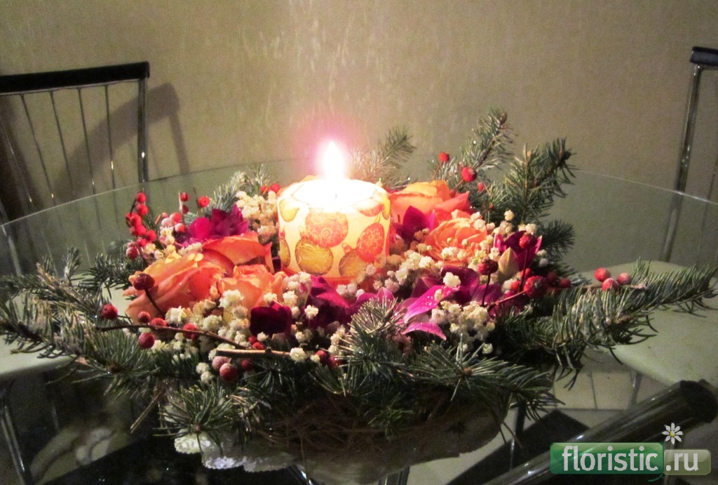 Яркие витрины магазинов, мандарины уже в каждом доме, прошла новогодняя суета... Свечи, шампанское, шоколад - засидевшиеся гости наших домов, которые стали частью наших интерьеров, нас самих... Праздник к нам приходит... доносится из голубых экранов, и от этого становится тепло и радостно... Сегодня я вас угощу флористической "селедкой под шубой", надеюсь, вам будет вкусно: ![]() |