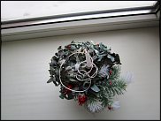 Сразу прошу прощения за качество фото, снимала поздно вечером, а света совсем мало. Шар-"снежный ком" из гипса, по технологии пасхального яйца. ![]() ![]() |