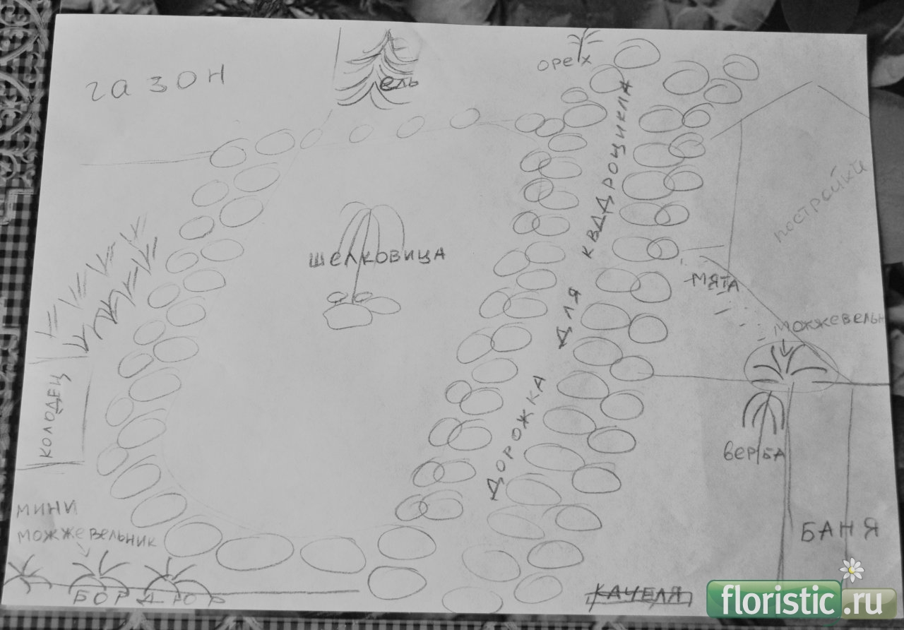 можжевельник находиться справа на треугольном пятачке до дорожки(там у нас мята и немного цветочков),на самом углу верба сейчас штамбовая,дорожка остается елочка сортовая, именно эту выбросили-засохла....сейчас голубая сидит,ростом 120см,слева от нее через дорожку, еще одна,которая очухалась слева находится от участочка дорожка и колодец(фотки в другой теме выставляла) Летом средняя температура 30-35 градусов....бывает намного больше сейчас попробую нарисовать рисунок поподробней и выставлю Рысеночка,можно общаться на "ты" |