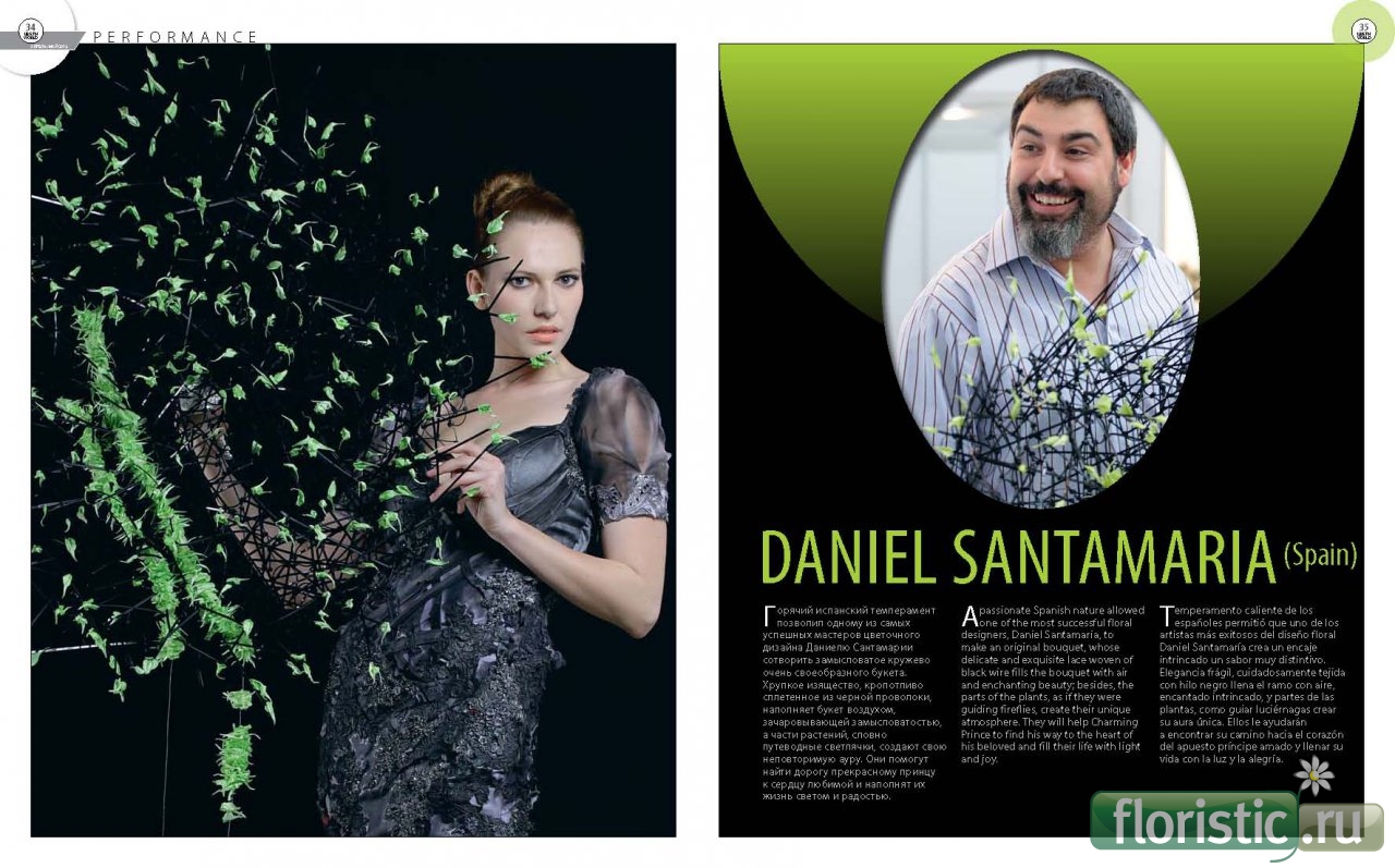 успешных мастеров цветочного дизайна Даниелю Сантамарии сотворить замысловатое кружево очень своеобразного букета. Хрупкое изящество, кропотливо сплетенное из черной проволоки, наполняет букет воздухом, зачаровывающей замысловатостью, а части растений, словно путеводные светлячки, создают свою неповторимую ауру. Они помогут найти дорогу прекрасному принцу к сердцу любимой и наполнят их жизнь светом и радостью. A passionate Spanish nature allowed one of the most successful floral designers, Daniel Santamaria, to make an original bouquet, whose delicate and exquisite lace woven of black wire fills the bouquet with air and enchanting beauty; besides, the parts of the plants, as if they were guiding fireflies, create their unique atmosphere. They will help Charming Prince to find his way to the heart of his beloved and fill their life with light and joy. НЕ ПРОПУСТИТЕ ФЕЕРИЧЕСКИЙ РОЖДЕСТВЕНСКИЙ ПОКАЗ В КИЕВЕ! «FLORAL REVOLUTION» ОТ АРАИКА ГАЛСТЯНА, ДАНИЭЛЯ САНТАМАРИИ И ЕЛЕНЫ БУТКО. (26 ОКТЯБРЯ 2013 Г.) ДАНИЭЛЬ САНТАМАРИЯ. СЕМИНАР: "ВРЕМЯ РОЖДЕСТВА"! (22-24 ОКТЯБРЯ 2013 Г.) Подробнее: FLORAL REVOLUTION ОТ АРАИКА ГАЛСТЯНА, ДАНИЭЛЯ САНТАМАРИИ И ЕЛЕНЫ БУТКО ARAIK GALSTYAN Moscow International Floral Design School Оплатить: http://store.araikgalstyan.com/товар...ория/seminars/ По всем вопросам обращайтесь: Email: agfloralschool@gmail.com Контактная информация: Сайт: http://world-floral.com www.araikgalstyan.com |