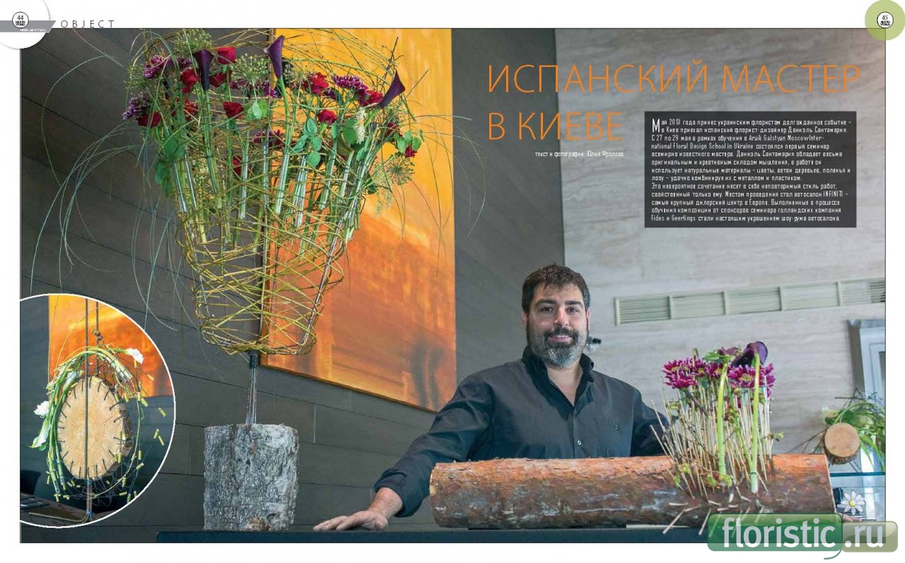 Спешите записаться! Подробнее: FLORAL REVOLUTION ОТ АРАИКА ГАЛСТЯНА, ДАНИЭЛЯ САНТАМАРИИ И ЕЛЕНЫ БУТКО ARAIK GALSTYAN Moscow International Floral Design School Оплатить: http://store.araikgalstyan.com/товар...ория/seminars/ По всем вопросам обращайтесь: Email: agfloralschool@gmail.com Поделись с друзьями! Фото. Даниэль Сантамария. Журнал "Цветы World" Magazine "Flowers World" (апрель-май 2013 г.) |
