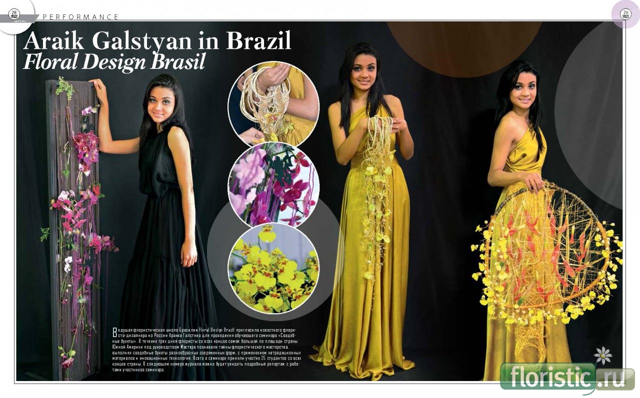 (август 2013 г.). Araik Galstyan in Brazil Floral Design Brasil Ведущая флористическая школа Бразилии Floral Design Brazil пригласила известного флориста-дизайнера из России Араика Галстяна для проведения обучающего семинара «Свадебные букеты». В течение трех дней флористы со всех концов самой большой по площади страны Южной Америки под руководством Мастера познавали тайны флористического мастерства, выполняя свадебные букеты разнообразных современных форм, с применением нетрадиционных материалов и инновационных технологий. Всего в семинаре приняли участие 25 студентов со всех концов страны. В следующем номере журнала можно будет увидеть подробный репортаж с работами участников семинара. В КИЕВЕ! В октябре, в рамках грандиозного флористического события будет проходить показ «FLORAL REVOLUTION» ОТ АРАИКА ГАЛСТЯНА, ДАНИЭЛЯ САНТАМАРИИ И ЕЛЕНЫ БУТКО У Вас есть возможность ассистировать известному во всем мире мастеру-флористу - Араику Галстяну! Спешите записаться! Подробнее: FLORAL REVOLUTION ОТ АРАИКА ГАЛСТЯНА, ДАНИЭЛЯ САНТАМАРИИ И ЕЛЕНЫ БУТКО ARAIK GALSTYAN Moscow International Floral Design School Оплатить: http://store.araikgalstyan.com/товар...ория/seminars/ По всем вопросам обращайтесь: Email: agfloralschool@gmail.com Поделись с друзьями! Leading brazilian Floral School « Floral Design Brazil» has invited famous florist designer of Russia Araik Galstyan for Buchan seminar on « Wedding bouquets». During three days florists from all over the largest country in South America under the Master learned the secrets of mastery by performing floral wedding bou quets of various modern forms with the use of innovative materials and innovative t echnologies. In total, the seminar was attended by 25 students from the milestones over th e country. In the next issue of the magazine you will see a detailed report with the w orks of the participants. |