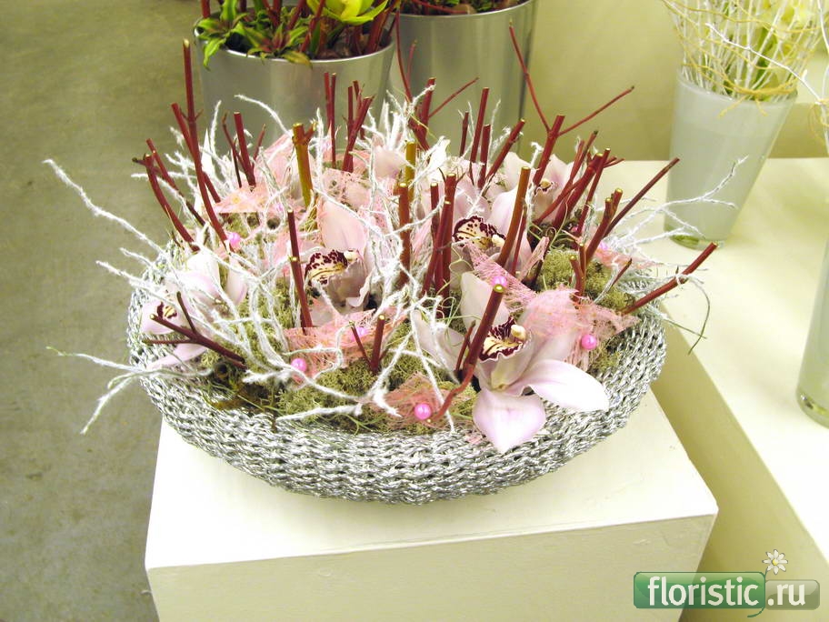 Вопрос такой: у нас есть цимбидиум и кроме того, чтобы расчленить его на отдельные цветочки, хочется еще продавать целиком ветку..., как вы обычно поступаете в таком случае? Мы сделали прозрачную трубу с цветным фетром, но что-то верх мне не очень нравится (может по-другому заворачивать?).... Еще я нашла презентацию цимбидиума от Г.Луна, такие варианты с высокими палками мне нравятся больше, завтра попробую. А что еще можно придумать? ![]() |
