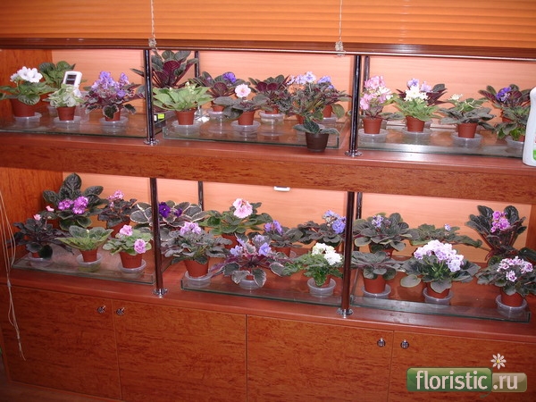 Муж занимается сенполиями более 20 лет, а я соответственно живу с этим 15... Это налагает свои отпечатки, например срезка никакая в нашем доме не появляется ни при каких условиях, это табу и источник заразы (муж агроном, в т. ч. работал агрономом по защите растений). Я в роли тепличного рабочего, мою, чищу, поливаю...Немного фото. |