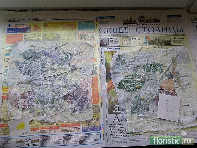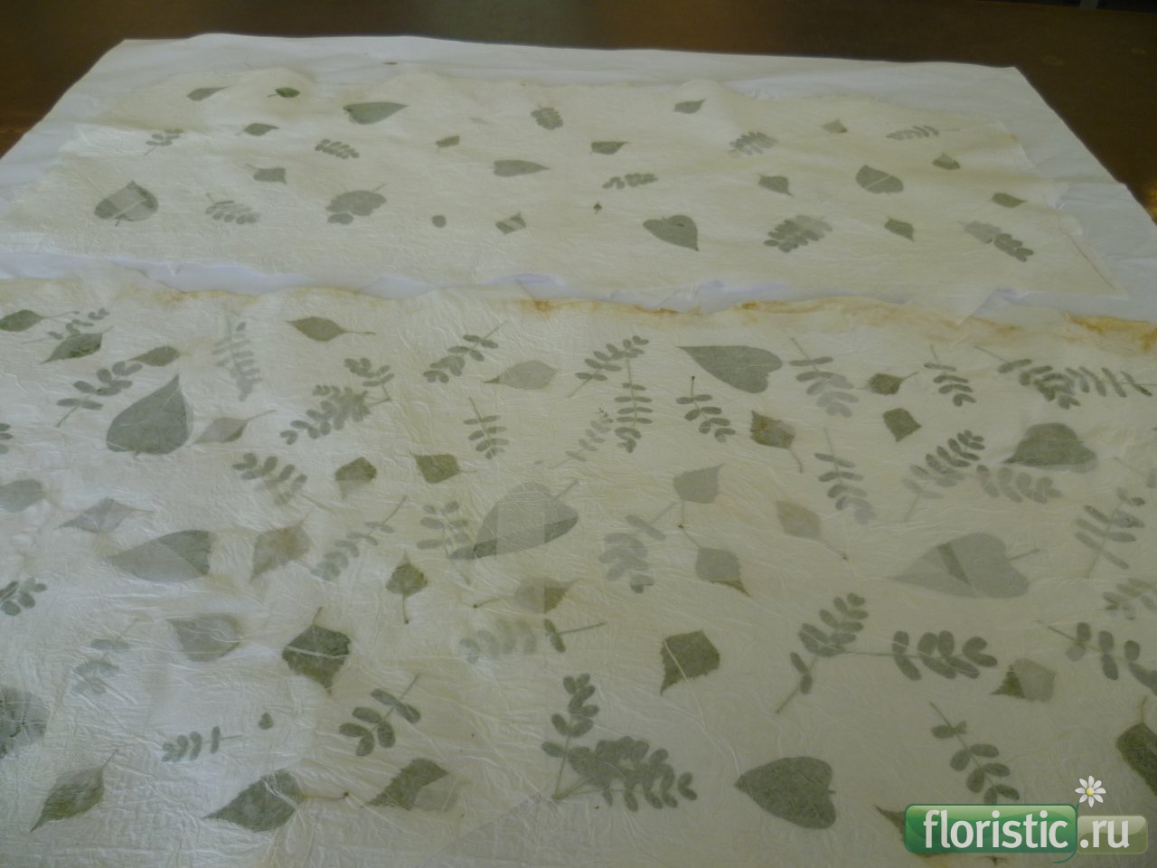 в посте детские работы http://izostudiya.livejournal.com/121579.html#cutid1 "Как делать: берем любой файл или пакетик(скользкая поверхность), на него кладем салфетку бумажную,обычную. Потом на ней раскладываем композицию из сухих растений, сверху накрываем второй салфеткой и промазываем разведенным клеем ПВА. ПВА развести водой, чтоб был негустым. Все это должно высохнуть. На следующем уроке проглаживаем утюгом" |