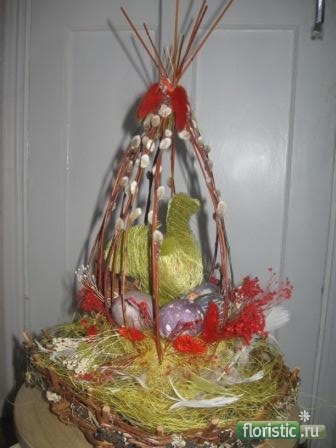 Это мой Куренок Пасхальный. Делала на конкурс флористический в воскресной школе, кстати занял первое место. (но это так, не хвастовство, так как уровень этого конкурса понятен) Теперь переехал жить в Патриархию. Кстати яйца тоже сама расписывала, и корзиночку сама плела, на лозоплетении (милый такой предметец) |