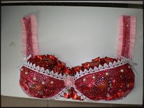 за основу брала вот этот мастер класс http://club.osinka.ru/topic-65960?p=3477622� только коричневых лепестков не было, вырезала длинную (см. 30-40) полоску коричневой органзы см.3-4 шириной и нарезала ее с одной стороны лапшичкой. ну толщиной наверное по 0,7см. Потом взяла эту резанную полоску и поддержала над свечкой, вся лапшичка загнулась и скукожилась. Вот это и есть часть внутр. основы. А еще нарезала совсем тоненькую (мм по 2) лапшичку из коричн. гофры. Тоже взяла полосочку, но значительно меньше, чем из органзы. И все это вокруг конфеты на шпажку завернула и приклеила. У некоторых цветочков попробовала сделать дополнительные лепестки из органзы с внешней стороны, получается красиво! только их нужно тоже над свечечкой подержать, чтоб краешек фактуристый был. Саму красную бумагу для использовала только одного цвета, оттенка, как в мастер классе делать не стала. Вот вроде все, надеюсь понятно получилось объяснить.) |