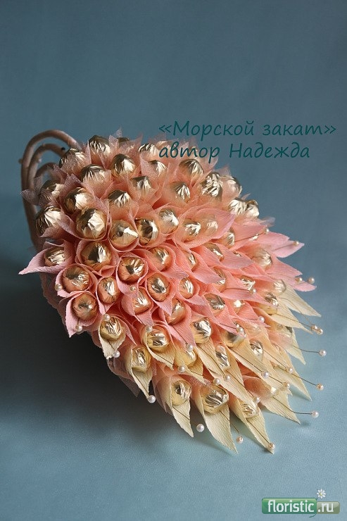 Вот как-то не очень я люблю букеты из конфет..Но вот "Морской закат" получила бы с огромным удовольствием...И наверное, не ела бы долго-долго...))....